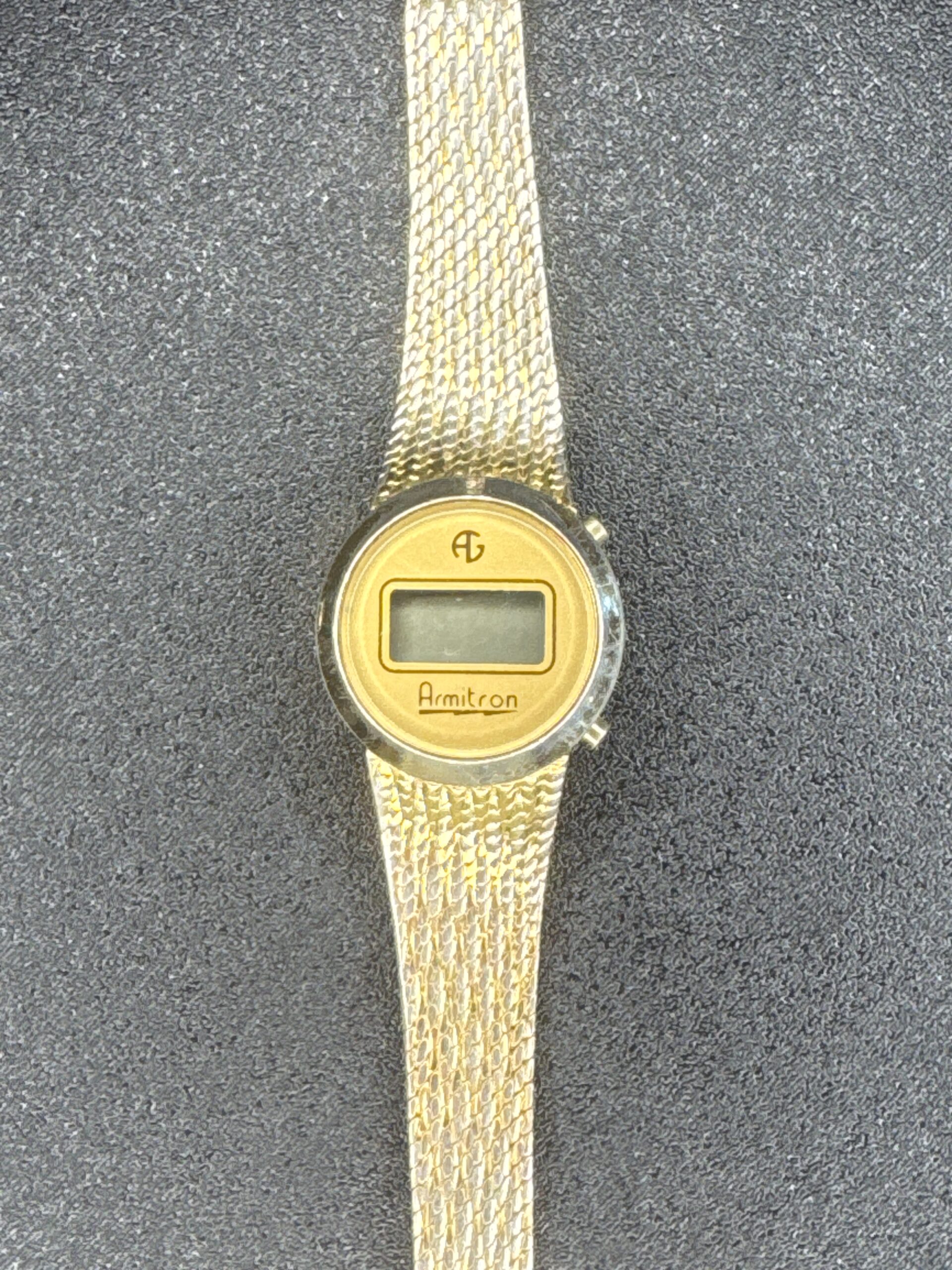 & Free ShippingExplore this vintage Armitron digital women’s watch with a gold-tone finish and mesh bracelet. Model 45/4600, featuring a digital display and stainless steel back.