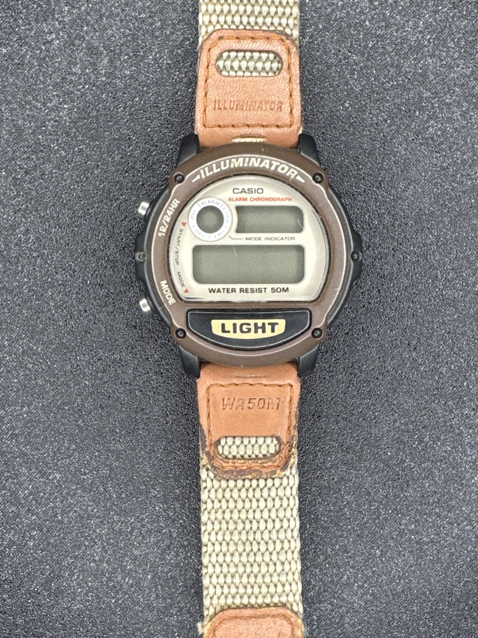 & Free ShippingCasio Illuminator Men’s Digital Watch 1536 with alarm, chronograph, and water resistance. Durable resin case with fabric and leather strap.