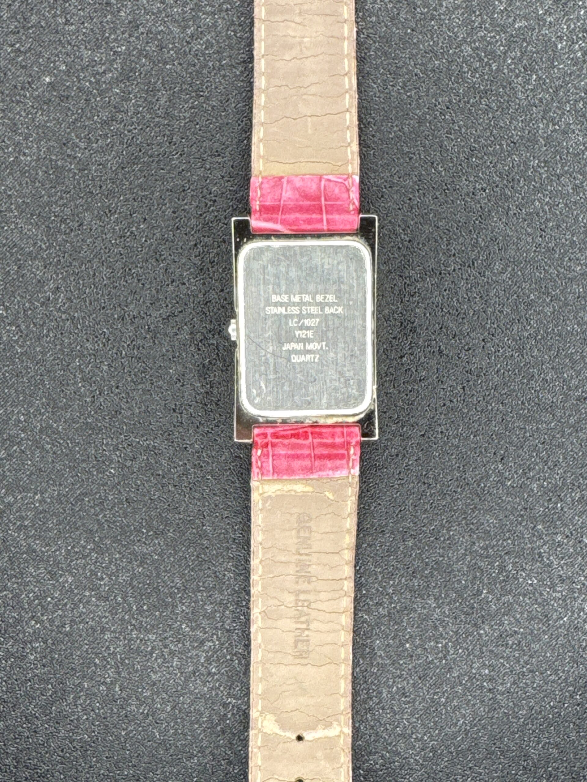 & Free ShippingLiz Claiborne Women’s Quartz Watch with pink dial and leather strap, model Y121E.