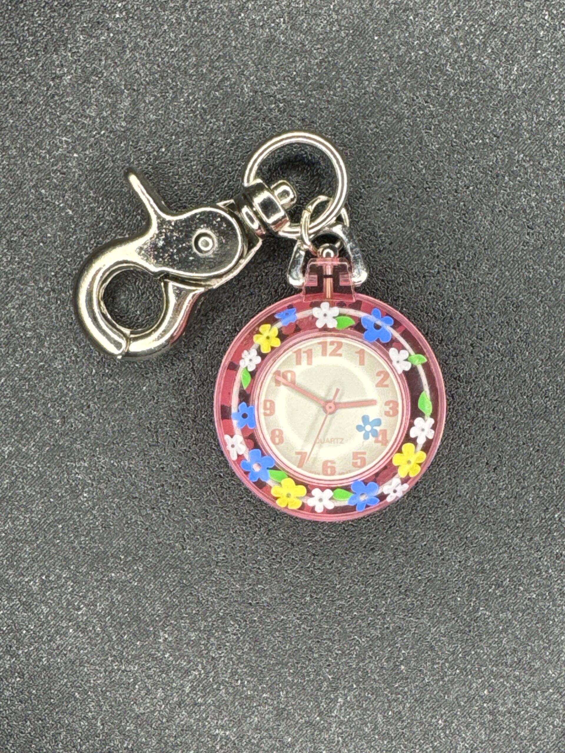 Charming quartz keychain watch with a floral design, perfect for adding a touch of whimsy to your accessories.
