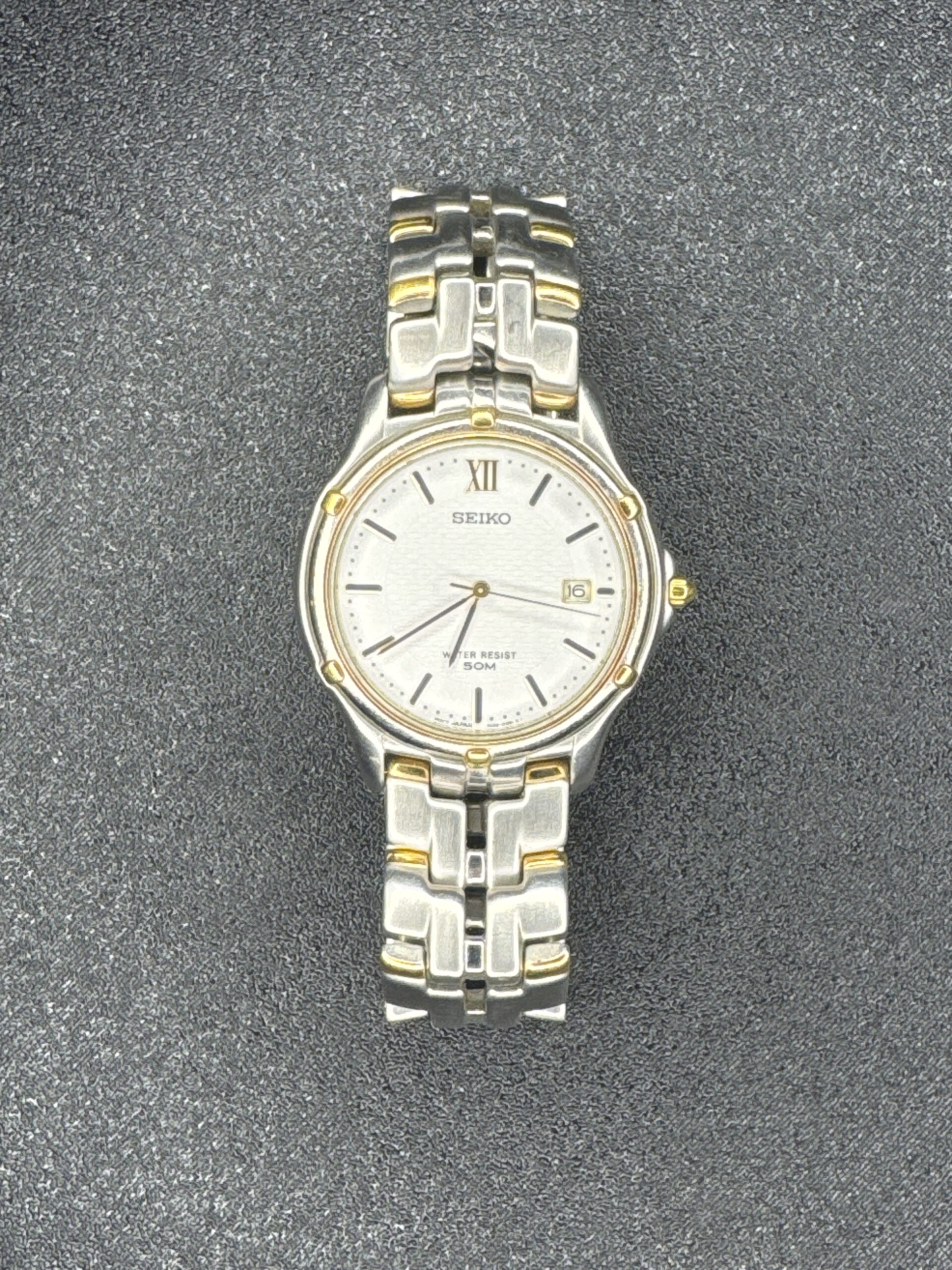 Seiko Date Two Tone Mens Watch 5 Bar 3102