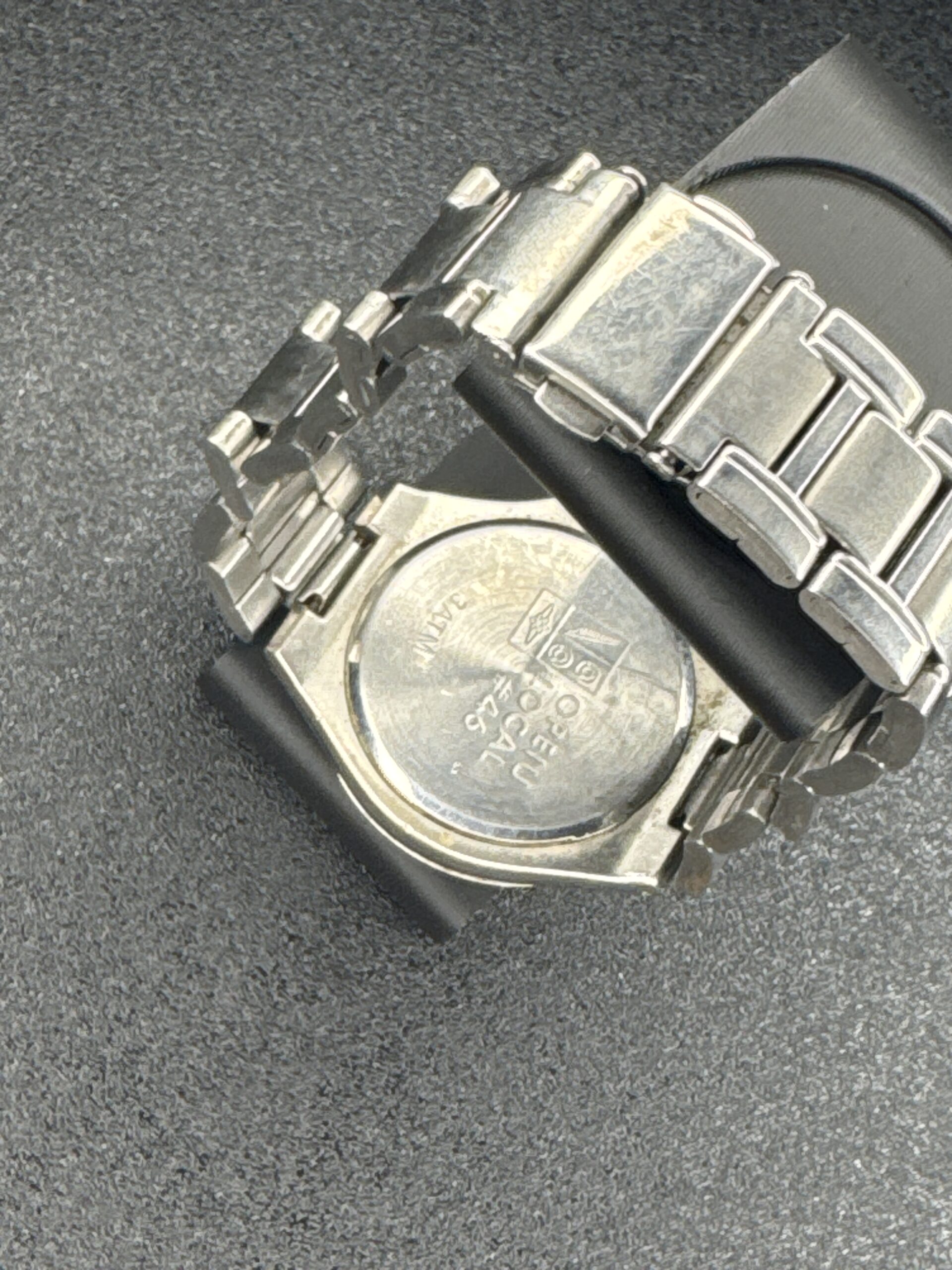 The Teamsters Pride Date Men’s Watch features a stainless steel case and bracelet with a brushed finish. The dial is dark with the Teamsters logo prominently displayed, and it includes a date window at the 3 o’clock position. The watch is water-resistant up to 3 ATM, making it suitable for everyday wear but not for swimming or diving. The back of the watch is engraved with additional branding details.