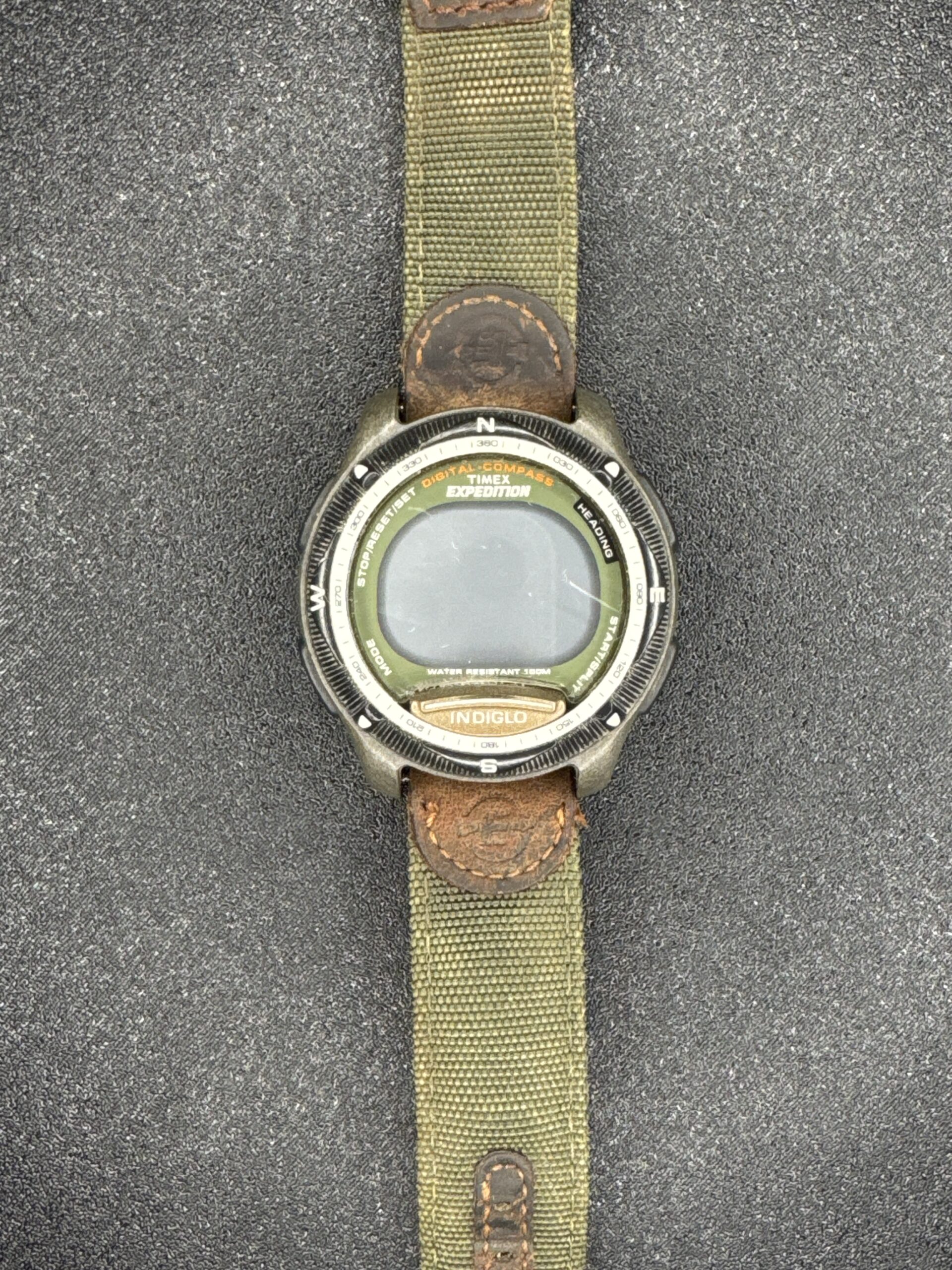 & Free ShippingTimex Expedition Men’s Digital Watch with Indiglo and digital compass. Rugged design, fair condition with visible wear.